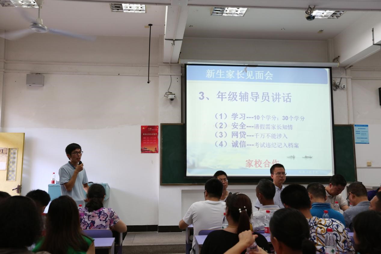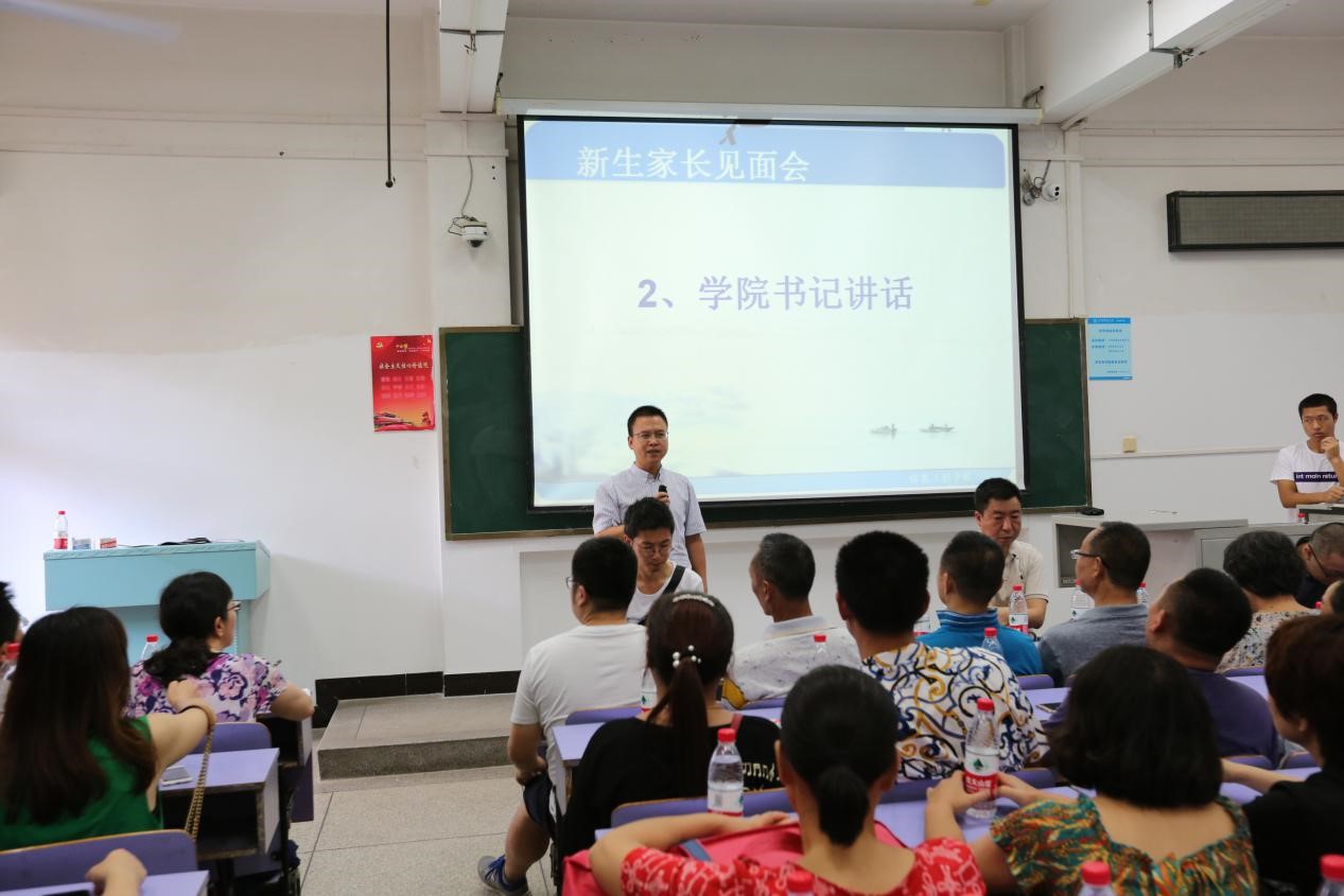 学院党委书记许德华讲话。他强调,大学生,尤其是大一新生要做好学业规划,调整好初入大学的适应期,并希望家长时时关注学生的各方面动态,和学校之间达成良性沟通渠道,共同携手培养学生成人成才。