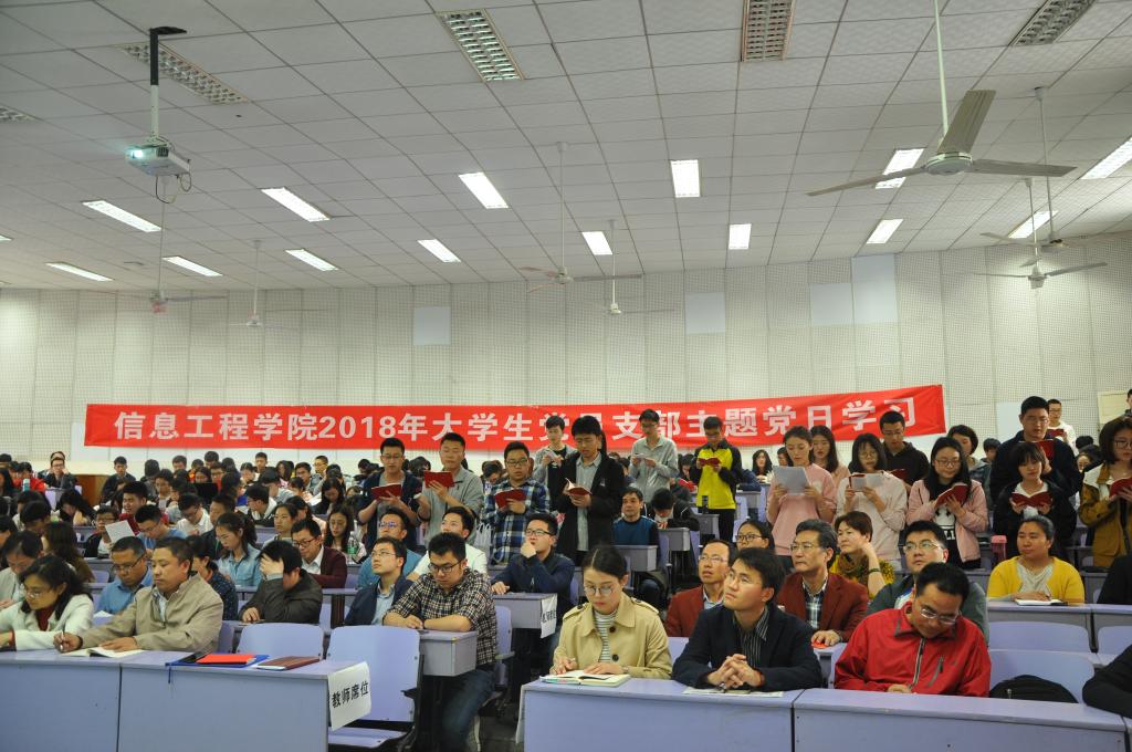 4月26日下午2点,信息工程学院在教三楼208教室举行2018年4月“支部主题党日”。大会由宋超老师主持,黄菊书记主讲,信工学院全体教师党员和学生党支部参加。