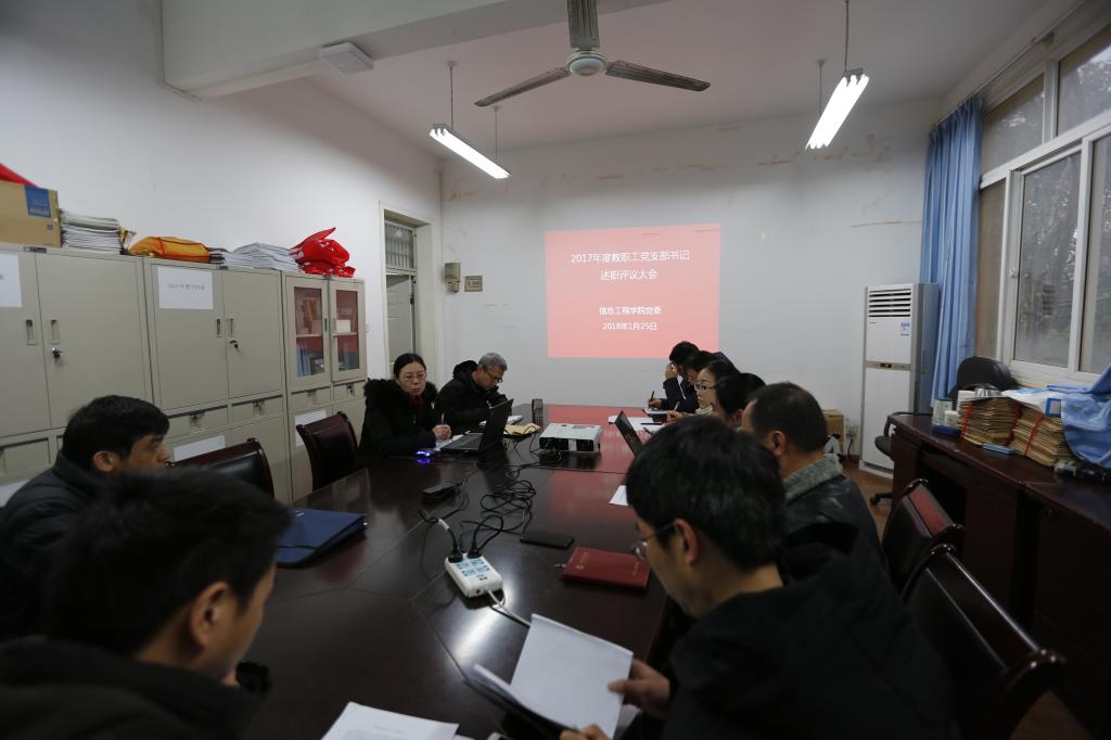 信息工程学院党委于2018年1月25日上午9点在学院207会议室召开了教职工支部书记述职会议,学院全体党委委员和纪委委员出席,会议由黄菊书记主持。各教工支部对所做工作进行汇报。