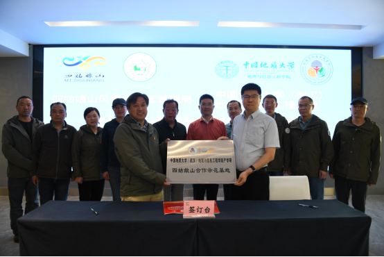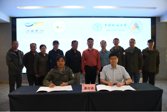 最后,金松强书记、王绍强院长代表双方签订了战略合作协议。王绍强院长代表学院向四姑娘山国家级自然保护区管理局授牌“中国地质大学(武汉)电影网站