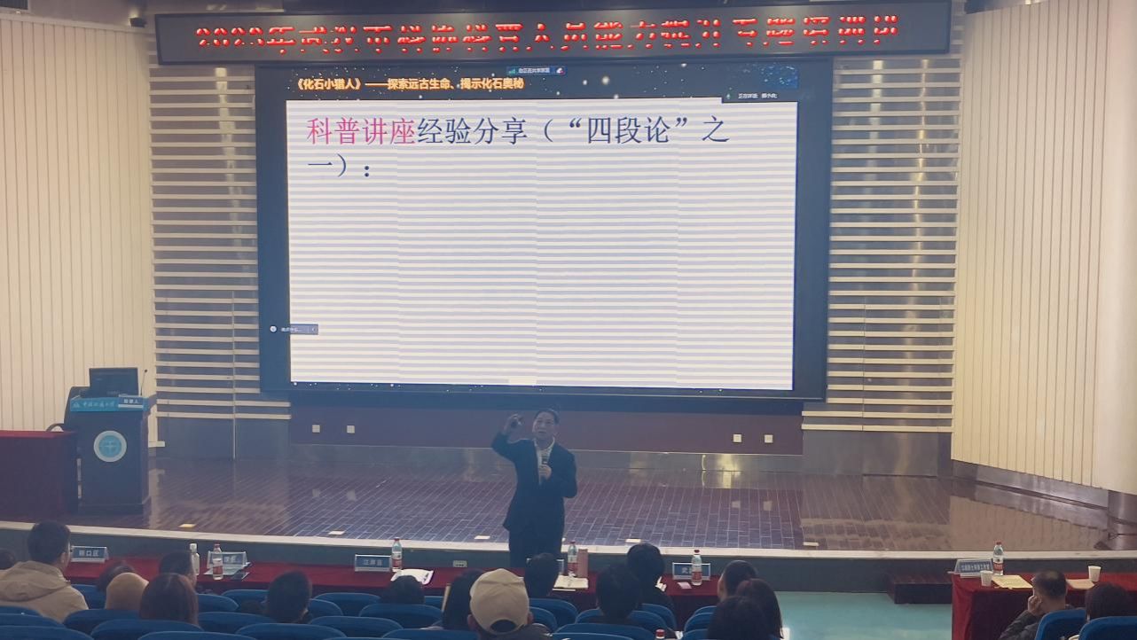 林伟华副教授分别围绕《星际远征:揭秘我国月球和火星探测工程》《网络科普的误区及规避》《新时代科普基地建设与运营》《科普研学理论与实践——新时代地学科普探析》《科普研学理论与实践——地学科普研学课程开发资源体系构建》《科普研学理论与实践——科普课程的组织与实施(以<化石小猎人>课程为例)》《科普研学理论与实践——科普研学课程开发的“四段论”》等主题进行授课,并组织学员深入中国地质大学逸夫博物馆现场教学。