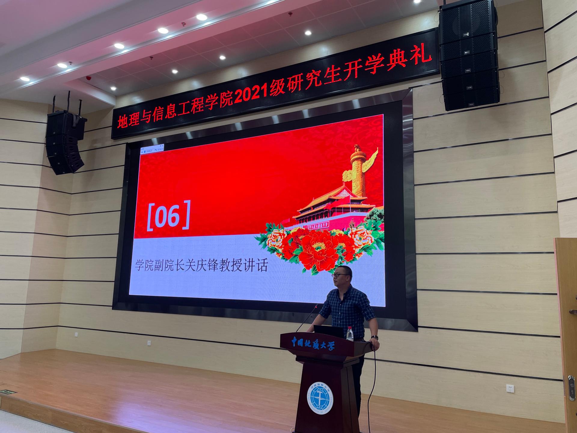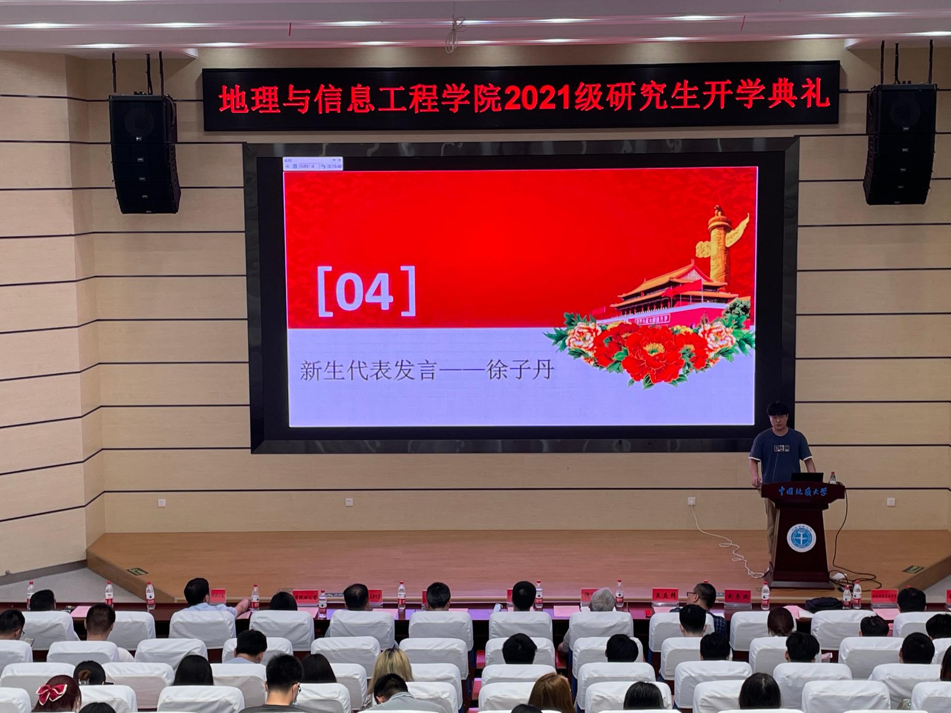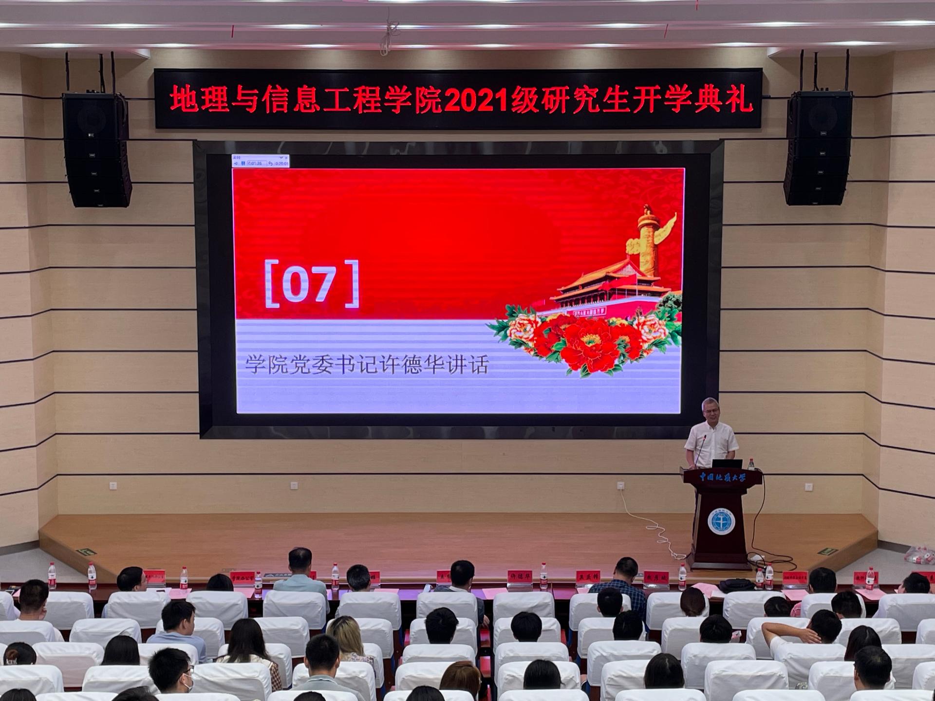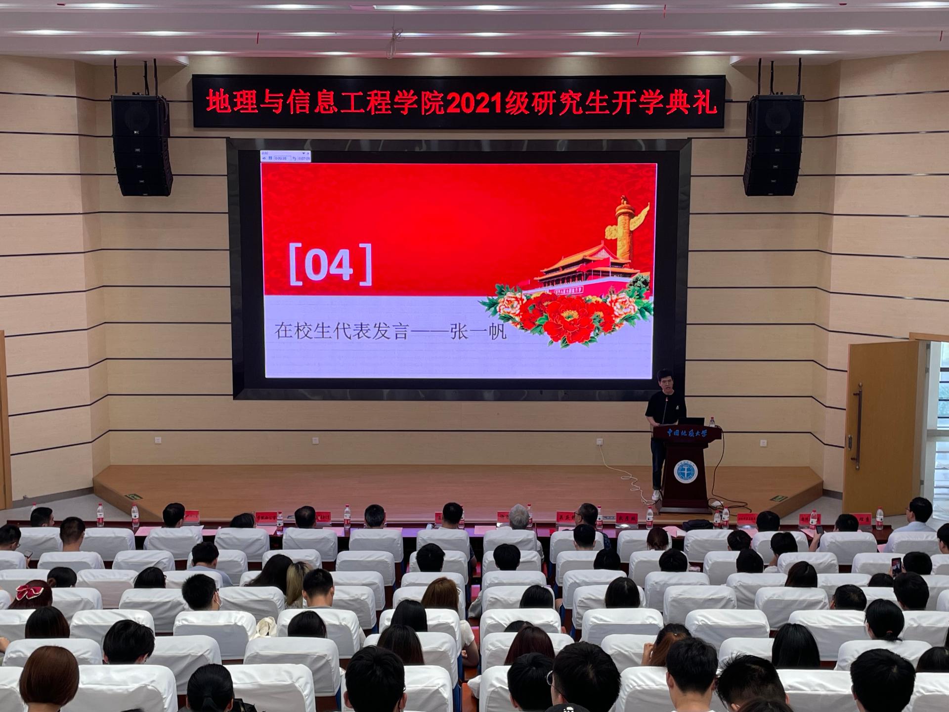 2021级研究生新生开学典礼于在未来城校区公教一楼208报告厅举行。院党委书记许德华、院长王绍强、副院长关庆锋、院党委副书记武彦斌、学院各系主任、教师代表禹文豪、学院办公室、教学与发展办公室、学生工作办公室老师以及2021级全体硕博新生参加典礼。