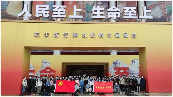 101名师生冒雨前往武汉客厅参观“人民至上 生命至上”抗击新冠肺炎疫情专题展览。