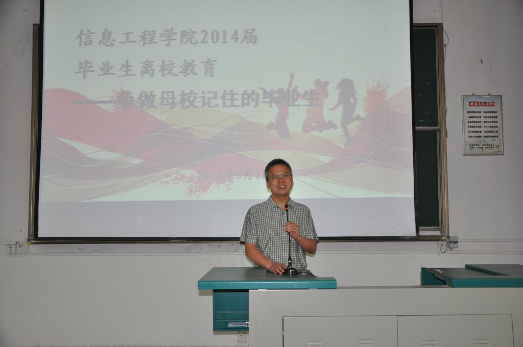 6月11日9点30分,信工学院全体毕业生(本科和研究生)在教1楼一阶教室开展了以“做有社会责任感的时代青年”为主题的毕业生专题教育。