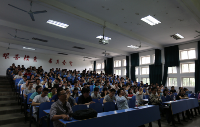 报告还没开始,教室里已座无虚席。四点整,谢忠院长简单介绍龚健雅院士后,讲座正式开始。龚院士从背景、实时GIS的主要特征、实时GIS的研究进展、实时GIS的应用以及结论展开。