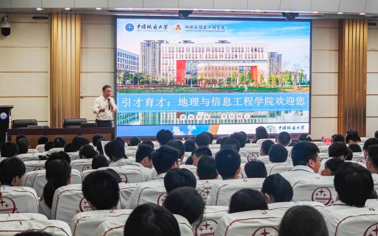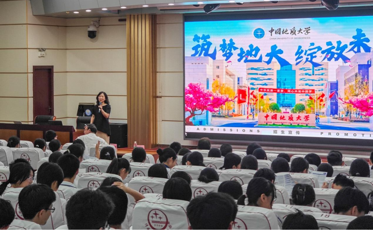 宣讲会上,孙莉介绍了学校历史、人才培养、科研创新、实践教学、学生活动等方面的基本情况,诚挚邀请天河中学优秀学子报考中国地质大学(武汉)。
