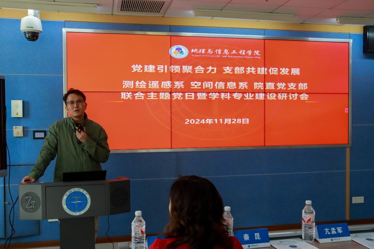 (通讯员 杨乃 岳林蔚)11月28日下午,测绘遥感系、空间信息系、院直党支部在未来城校区公教楼举办联合主题党日暨学科专业建设研讨会。学院党委书记孙莉、副院长关庆锋、副院长徐景田,测绘遥感系、空间信息系、院直党支部60余名党员、教学骨干参加活动。活动特别邀请武汉大学遥感信息工程学院秦昆教授、测绘学院黄海兰教授、资源与环境科学学院亢孟军副教授参加。