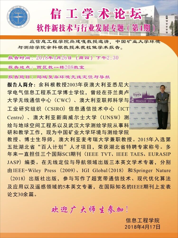 信工学术论坛第111期:局域复杂环境无线定位与导航