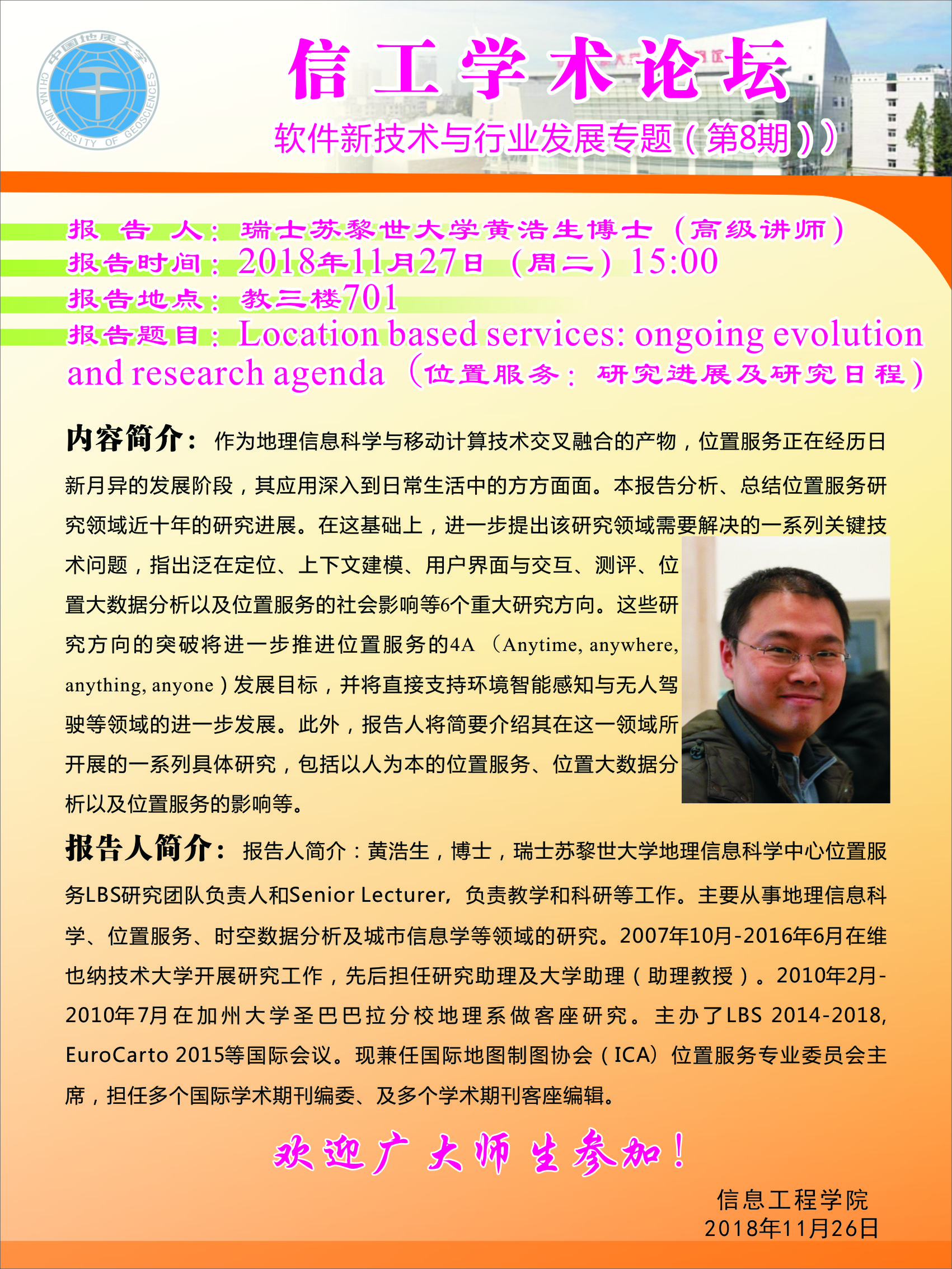 信工学术论坛第125期:瑞士苏黎世大学黄浩生博士(高级讲师)
