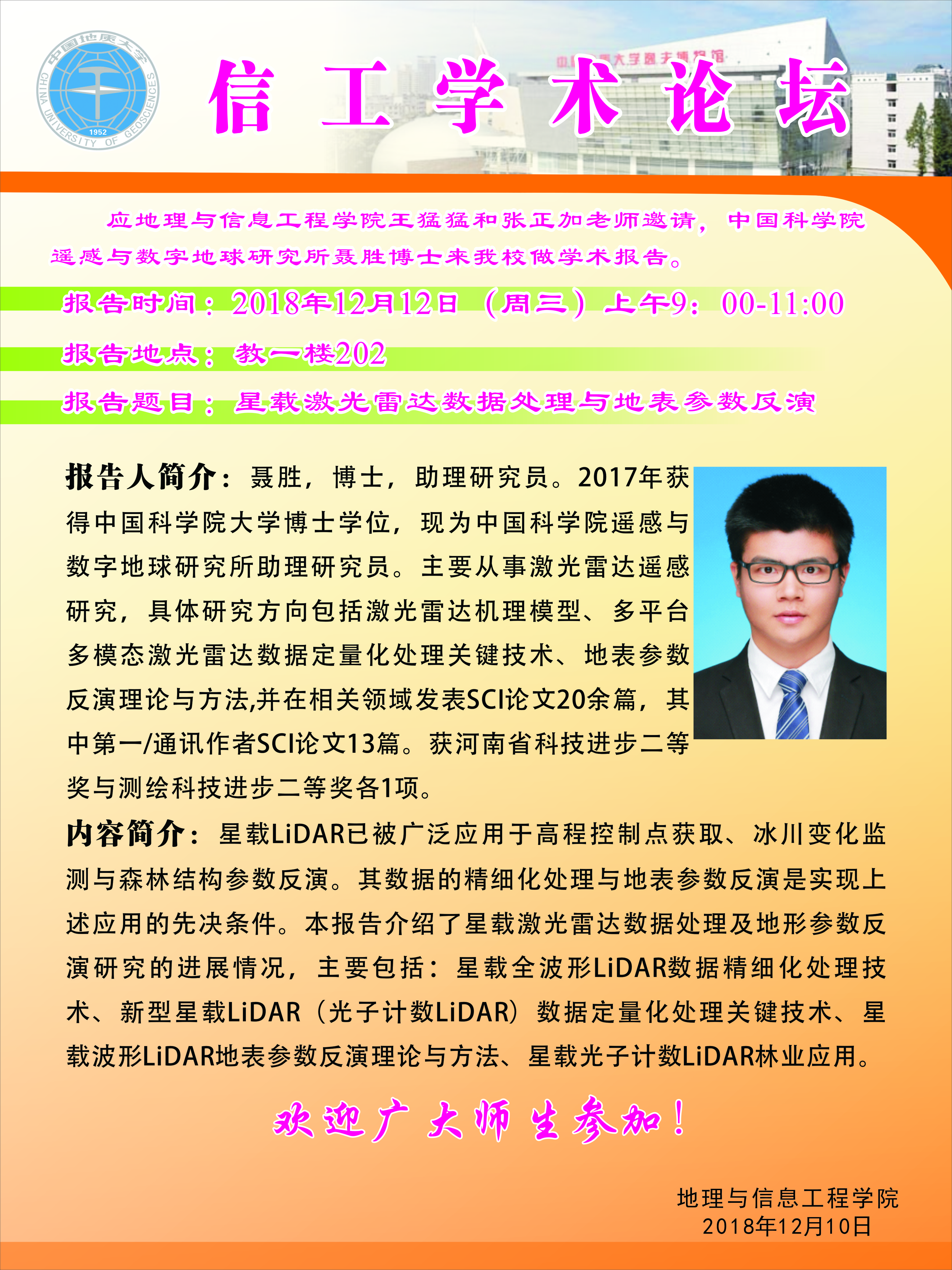 信工学术论坛第127期:中国科学院遥感与数字地球研究所 聂胜博士
