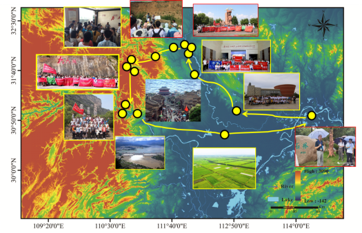 2020年新型冠状疫情发生后,地理学科迅速组织成立科技抗疫智力团队。充分发挥GIS领域的技术优势,开发出武汉市新型冠状病毒肺炎疫情态势分析系统,同时向湖北省和武汉市政府提交咨询报告12份,得到省市主要领导批示,并荣获中国地理学会评选的全国“抗疫防疫先进集体”荣誉称号。本科生先后斩获2016年第二届中 国高校地理科学展示大赛二等奖和最具学术奖、2019年度第五届中国高校地理展示大赛总决自然地理组二等奖、2019年第一届大学生自然资源科技作品大赛一等奖等。研究生发表SCI论文100余篇(其中Nature Index期刊论文40余篇),多名学生获评“长江学子”和“李 四光优秀大学生奖”。2017年起地理系连续组织以‘地理科学与国家需求’为主题的湖北省高校地理联合实习,内容涵盖长江大保护、三峡工程、南水北调、国家公园、新型城镇化、精准扶贫等相关内容,至今已成功举办三届,取得良好社会反响(图2)。