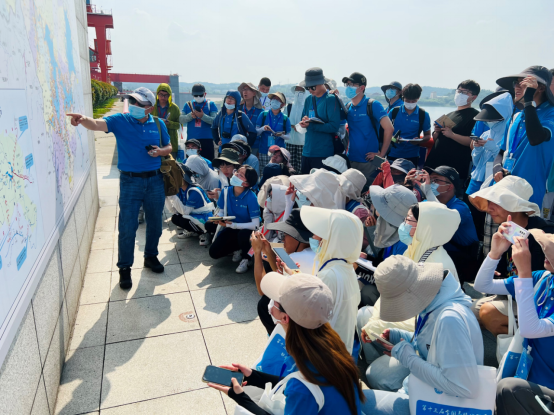 在丹江口大坝,李长安老师就丹江口水利枢纽工程对河流地质作用的影响以及生态环境效应、南水北调中线工程水源地水质保护等问题展开论述,从汉江流域的上游、中游和下游进行系统分析,引导学生思考大型水利工程修建的利弊及解决弊端问题的方案,鼓励学生对国家水利工程建设建言献策。