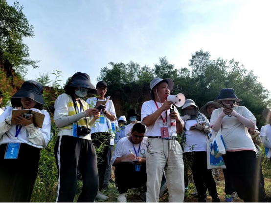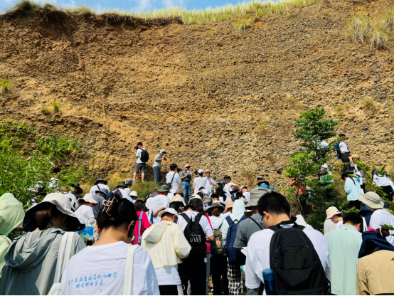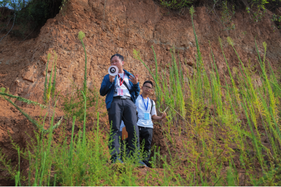 在黄土观察点,中国地质大学(武汉)季军良副教授向实习师生详细讲解了黄土的基本沉积特征、成因、物源、搬运动力、堆积地形、测年方法、类型划分;将郧阳黄土与黄土高原黄土进行对比,讲授黄土的古气候指示意义,带领学生走进第四纪沉积物的神奇世界。学生观察郧阳黄土的颜色、结构、构造、成分、钙质结核等基本特征,识别黄土的柱状节理,思考黄土中古土壤的形成过程及黄土与古土壤交替出现的第四纪冰期与间冰期旋回。