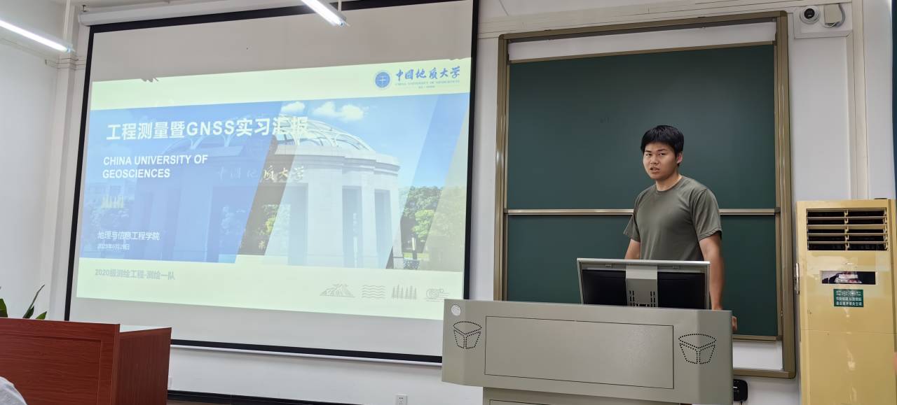 总结汇报期间,各实习学生代表围绕GNSS静态测量、跨河水准与三角高程测量比较、GNSS高程异常拟合、RTK测量与放样、巴东基地野外实习等内容展示实习小组工作成果,同时,对测绘工程专业的课程建设、实习内容提出建议。