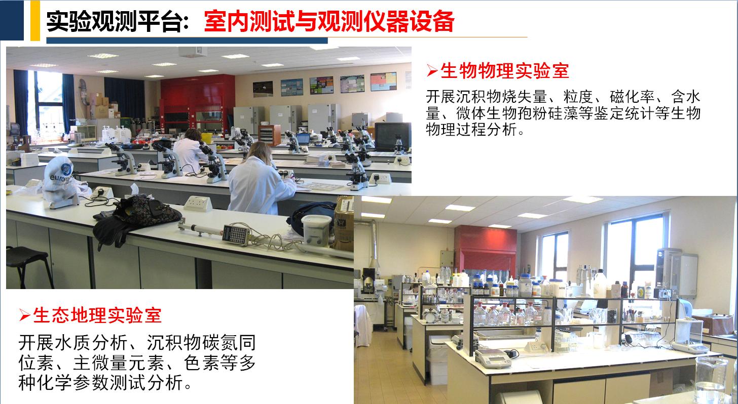 实验室现有面积近1万平米,拥有理化分析实验室和鄂东山地森林野外观测基地,有半制备液相色谱质谱仪、植物冠层结构分析仪、高级光合荧光测量系统、开路式智能涡度协方差分析系统、总有机碳分析仪、无人机、红外线热像仪、二氧化碳浓度监测仪、智能模拟器等设备500余台/套,总价2000余万元,为开展生态过程与环境演变机理提供了良好条件。