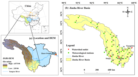 图1 金沙江流域位置及气象站点分布