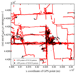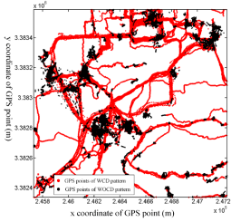 两类不同行走模式中包含了不同的区域空间信息。本文将WCD模式的轨迹数据用于提取行人路网路段、节点信息;WOCD模式的轨迹数据用于提取行人活动区域,如图3所示。