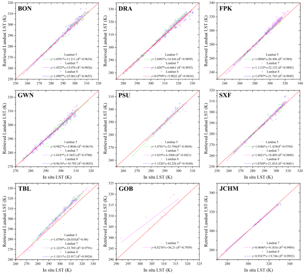 长时间序列地表温度(land surface temperature, LST)数据对生态、环境和气候变化等研究有极其重要的意义。Landsat系列卫星传感器(TM、ETM+和TIRS)自1982年开始以60-120米空间分辨率获取全球地表热辐射信息,截至目前,已经采集了超过四百万景Landsat热红外影像数据,为生产长时间序列(~40年)、较高空间分辨率(~100米)的地表温度产品提供了重要的数据基础。