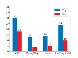 图2 不同方法在五个测试组的结果比较。每个测试组包含40个场景。图中条柱代表正确预测的场景数量。