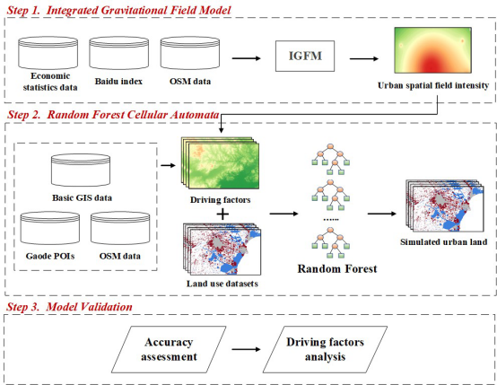 基于综合引力场模型和需求驱动的随机森林元胞自动机进行城市扩张模拟