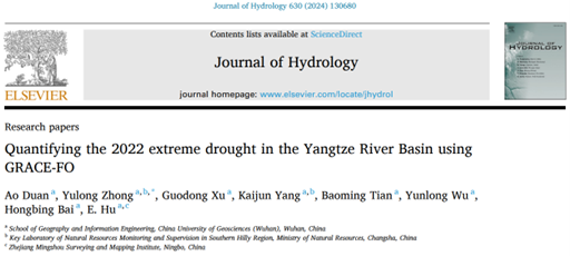 测绘遥感系2020级本科生段敖在水文水资源领域权威期刊《Journal of Hydrology》(地大T1,中科院1区TOP,影响因子6.4)发表学术论文《Quantifying the 2022 extreme drought in the Yangtze River Basin using GRACE-FO》,精确揭示了2022年长江流域极端干旱的爆发、持续时间等重要时空演变过程和水组分变化。本文的第一作者为电影网站