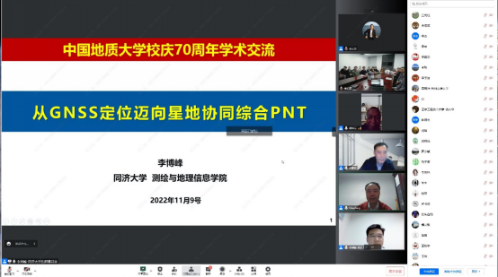 边少锋教授、吴云龙教授邀请,同济大学杰青李博峰教授做客名家论坛,为地大师生做了“从GNSS高精度定位迈向星基地基增强综合PNT”的学术报告。报告会通过腾讯会议及寇享学术网上视频会议方式进行,由边少锋教授主持,胡祥云教授代表学校对李博峰教授表示了欢迎和感谢,线上与会师生人数逾1600人。