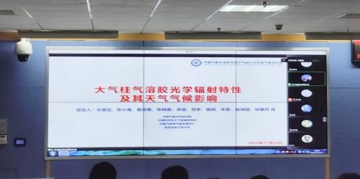 王伦澈教授、张明副教授和陶明辉教授邀请,中国气象科学研究院车慧正研究员做客此次学术交流会,以线上形式作题为“大气柱气溶胶光学-辐射特性及其天气气候影响”的学术报告,受到师生的热烈欢迎。报告由王伦澈教授主持,线上、线下与会人数共计逾260人。