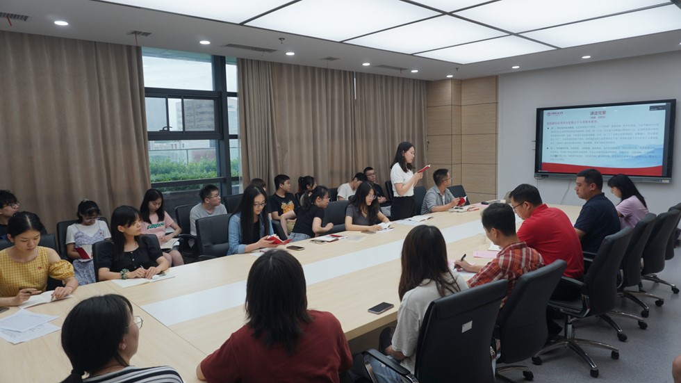 支部党员王睿同志带领支部全体成员重温入党誓词,任丽洁同志领学党章。赵青同志收缴党费并领学党费缴纳相关规定。徐惠孝、程莹两位同志分别带领与会人员学习了习近平总书记在中共中央政治局第四十次集体学习时的重要讲话精神和湖北省第十二次党代会精神。
