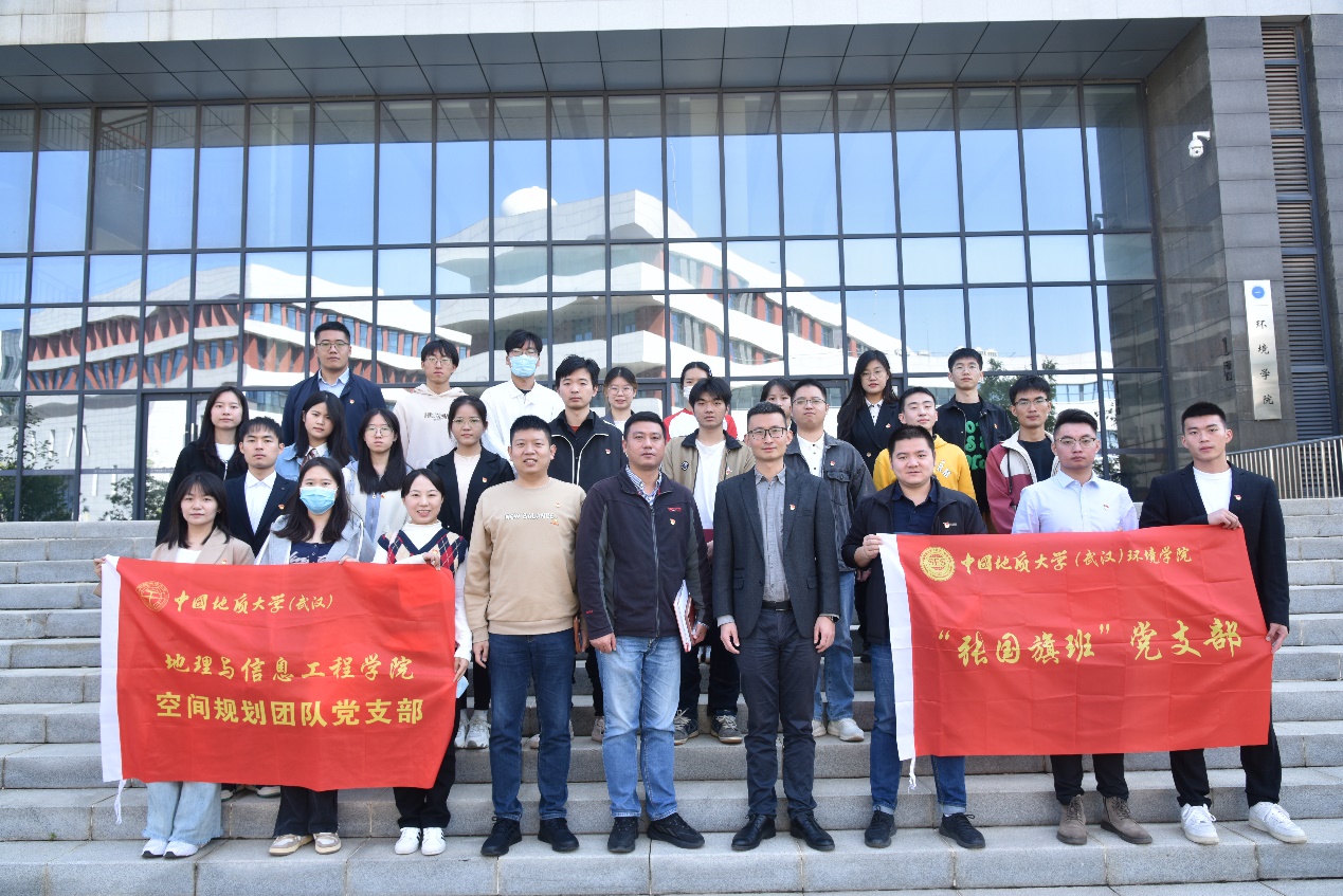 空间规划团队党支部与环境学院“张国旗班”党支部联合开展了“传承红色基因,携手迈向未来”的专题学习活动。活动由环境学院党建辅导员陈俊男主持,环境学院党委副书记王海峰,学院空间规划团队党支部书记曾杰、学院团委副书记赵晓振参加活动。