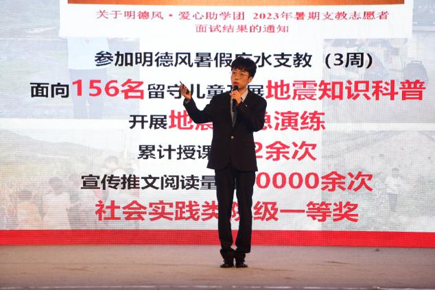 决赛现场,张鹏以《为大地“把脉”,向地球“听诊”,做地震安全“守夜人”》为题,从西部地区地震灾情引入,生动讲述了自己“在灾难中磨砺,在希望中前行”的成长故事,表达了对于地震监测系统的建设憧憬以及立志成为一名地震局地震监测预警人员的梦想,展现了地大学子积极向上的良好精神风貌。