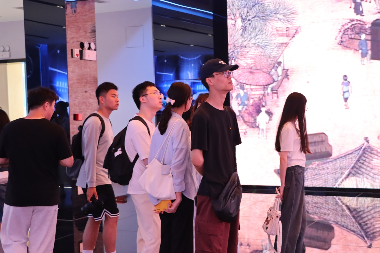 在汉阳区融媒体中心多功能演播厅,师生通过沉浸式体验XR虚拟演播,感受科技赋能高质量新媒体的快速发展,参观元宇宙数字文化展厅,感受270度冰屏4K流媒体的流光溢彩;到达汉阳市政数智化管理中心,参观智慧城市CIM平台,观看 “一扇门”式大数据处理服务基建决策的数智化;参观武汉琴台钢琴博物馆,在百余台古典与现代钢琴中感受艺术创作和音乐文化的相辅相成;在万达广场体验室内滑雪场和音乐俱乐部,体会休闲娱乐的创意与酣畅。