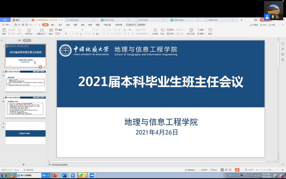 2021届本科毕业生班主任会议采取腾讯会议进行。参加本次会议有学院党委书记许德华、院长王绍强、副院长刘修国、副院长潘雄、以及2021届本科毕业生班主任。会议由武彦斌主持。