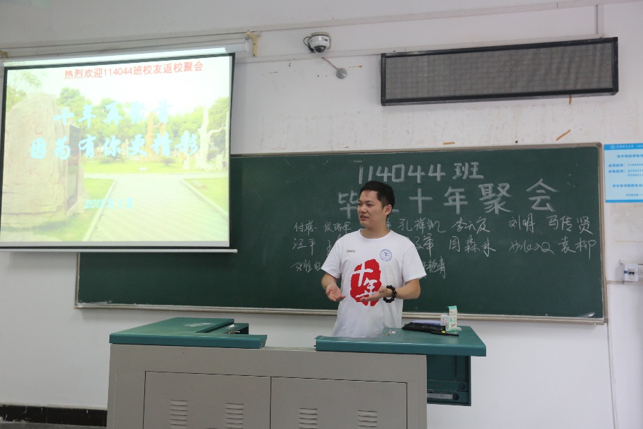 5月26日,信息工程学院2004级地理信息科学专业本科生毕业十周年聚会。下午2点30分,114041, 114042,114044班同学分别在教三楼202、204教室集中。学院党委书记黄菊老师,副书记许德华老师和班主任出席了此次活动。