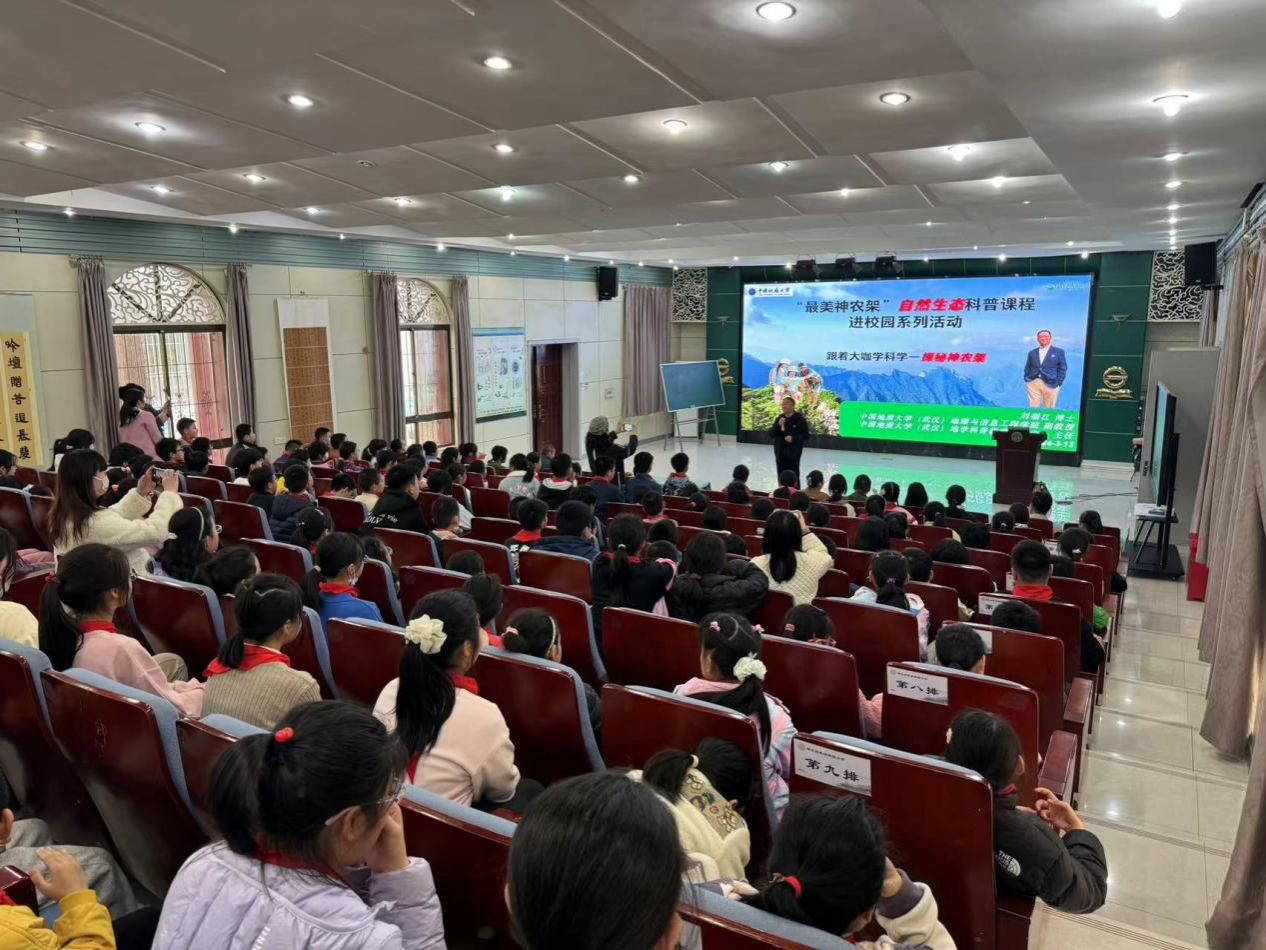 刘福江副教授亲临授课,以“跟着大咖学科学——探秘神农架”为主题,带领学生们从科学的角度了解神农架,认识神农架。